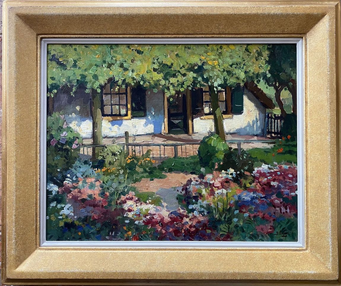 Bloementuin met boerderij