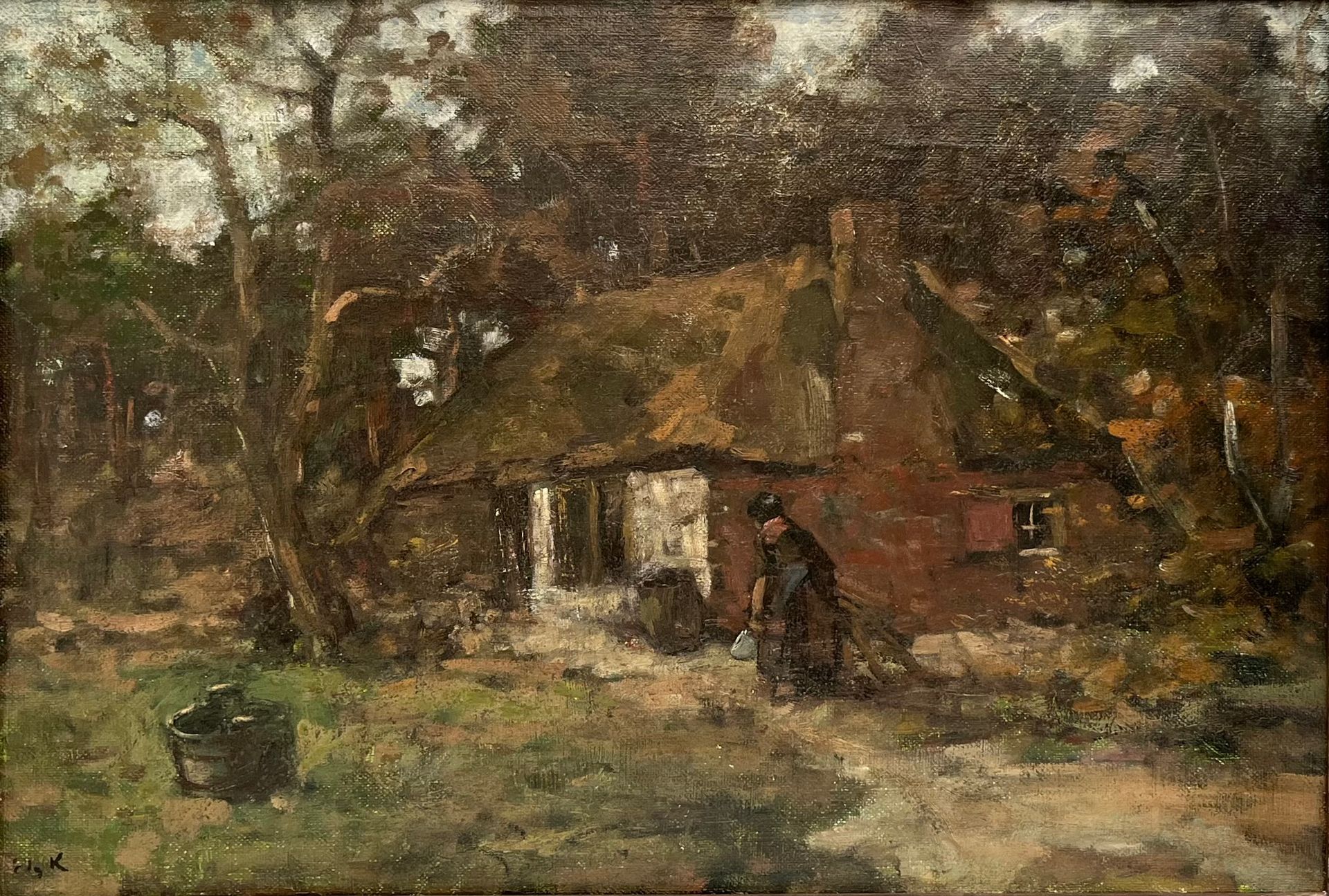 Omschrijving: Boerin op boerenerf Nunspeet